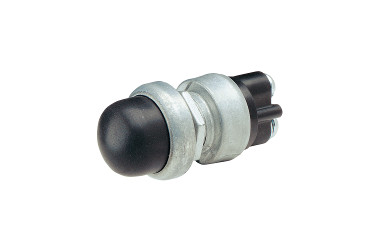 SPST, die cast housing, silver contacts, brass screw terminals Amperage rating 60A at 12V, 30A at 24V Mounting opening 16mm dia.